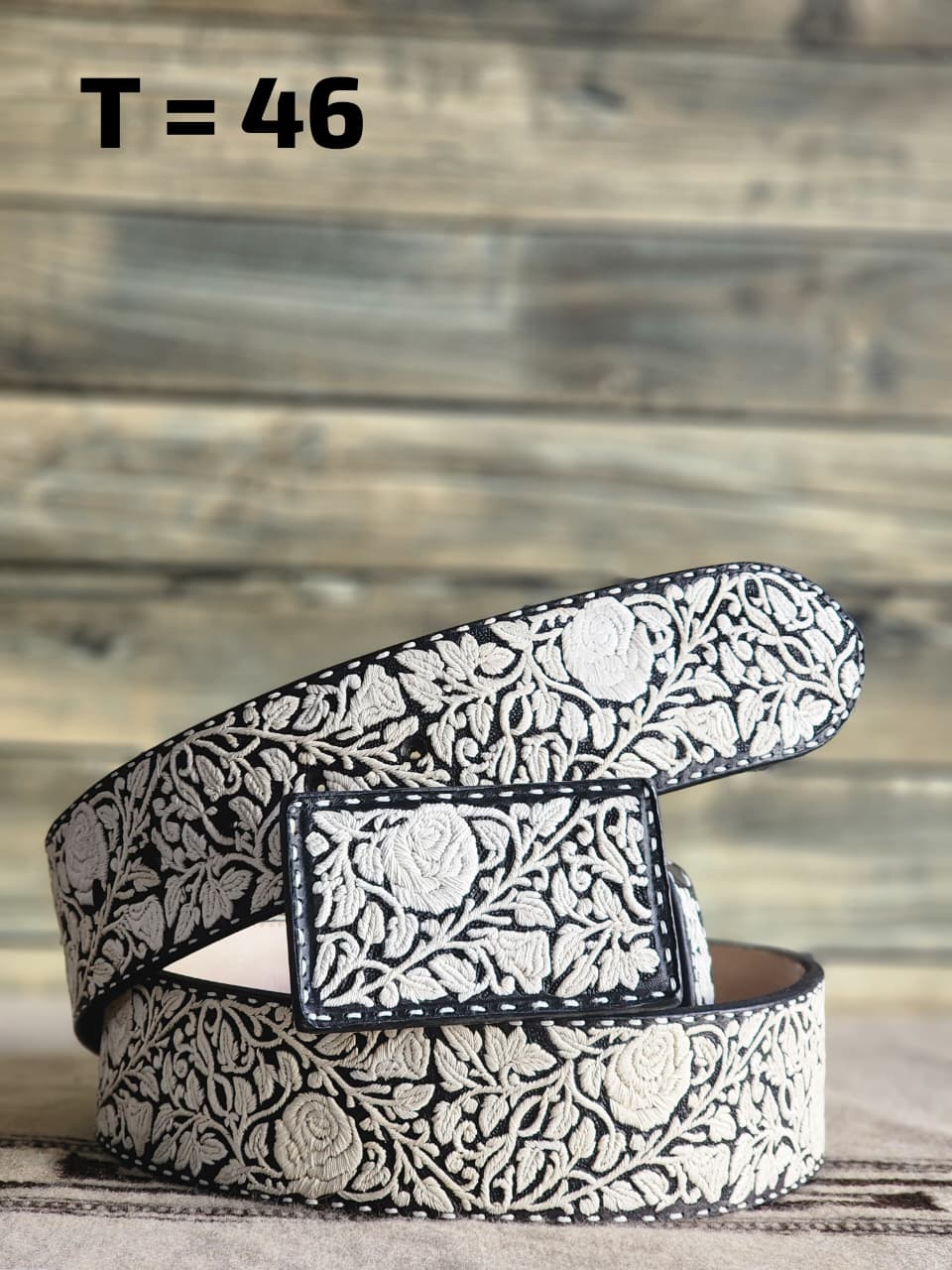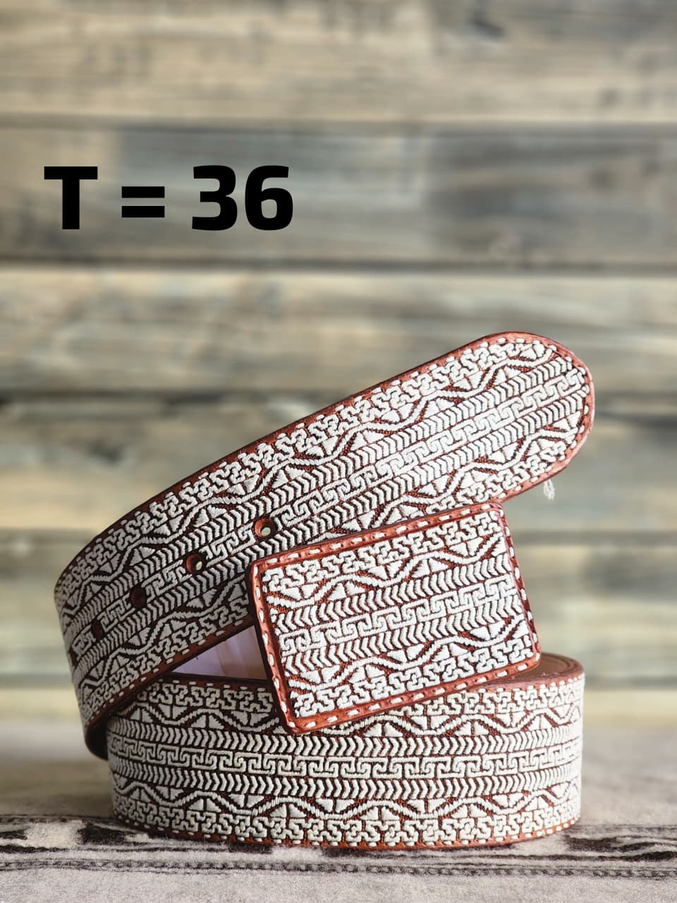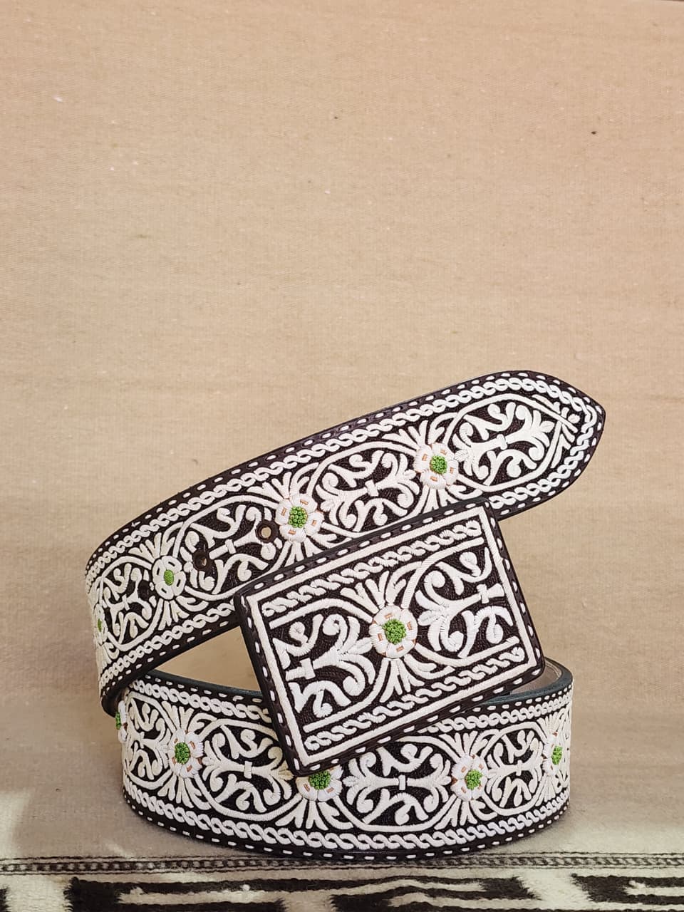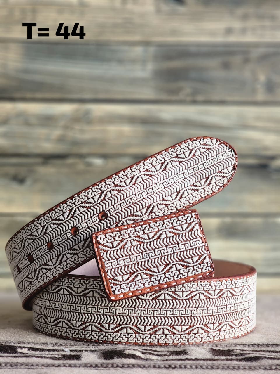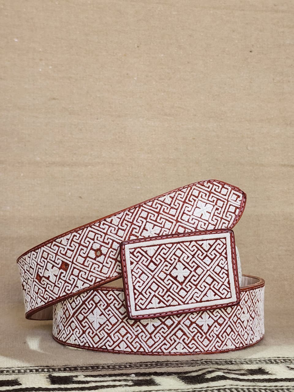 diestros artesanos en el manejo el hilo de pita. Estos cinturones pueden elaborarse también con hilo de plata, dándo a la piel sobre la cual se borda un acabado único.