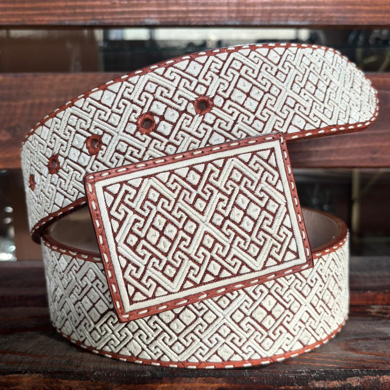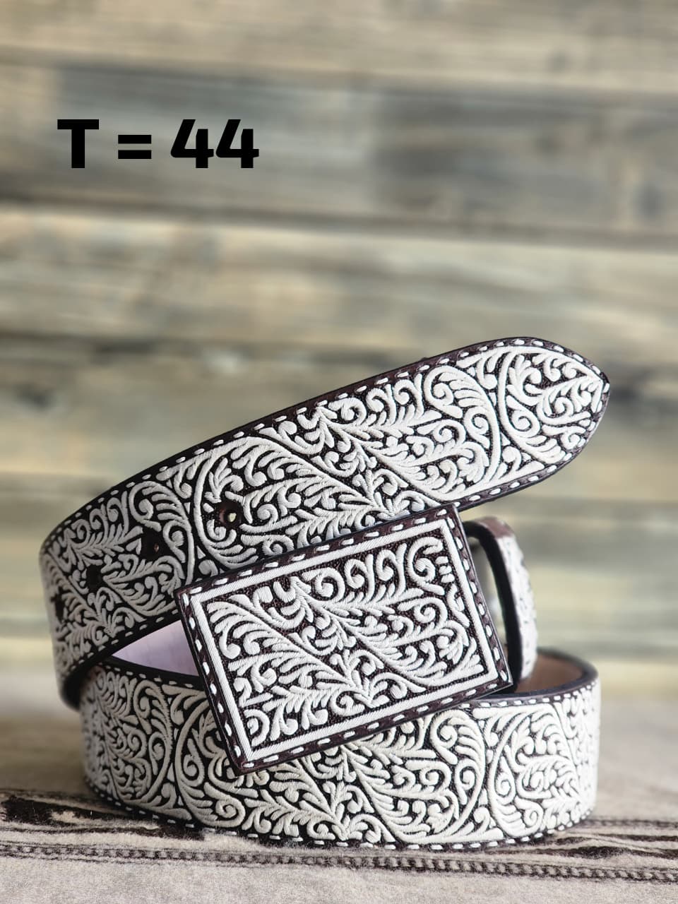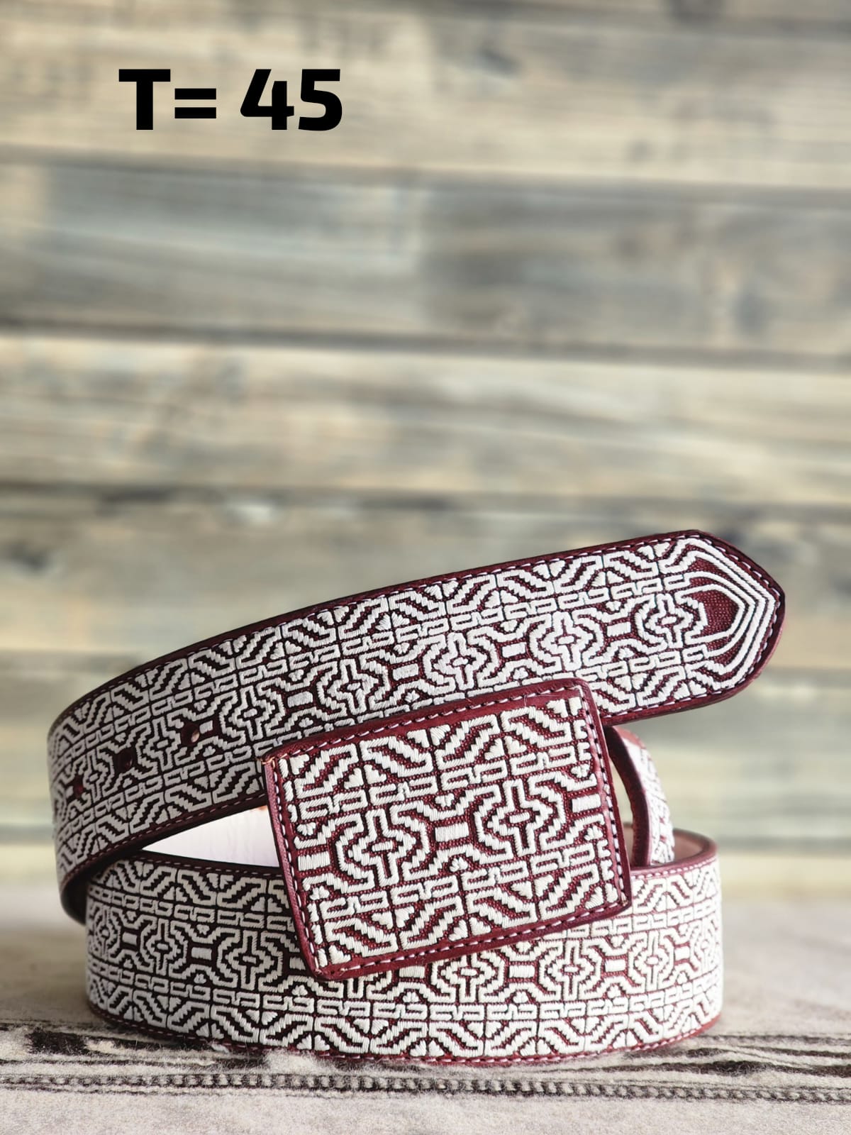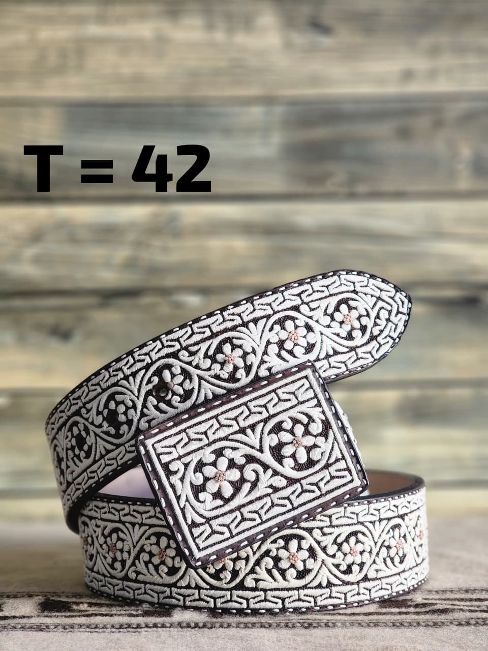 diestros artesanos en el manejo el hilo de pita. Estos cinturones pueden elaborarse también con hilo de plata, dándo a la piel sobre la cual se borda un acabado único.