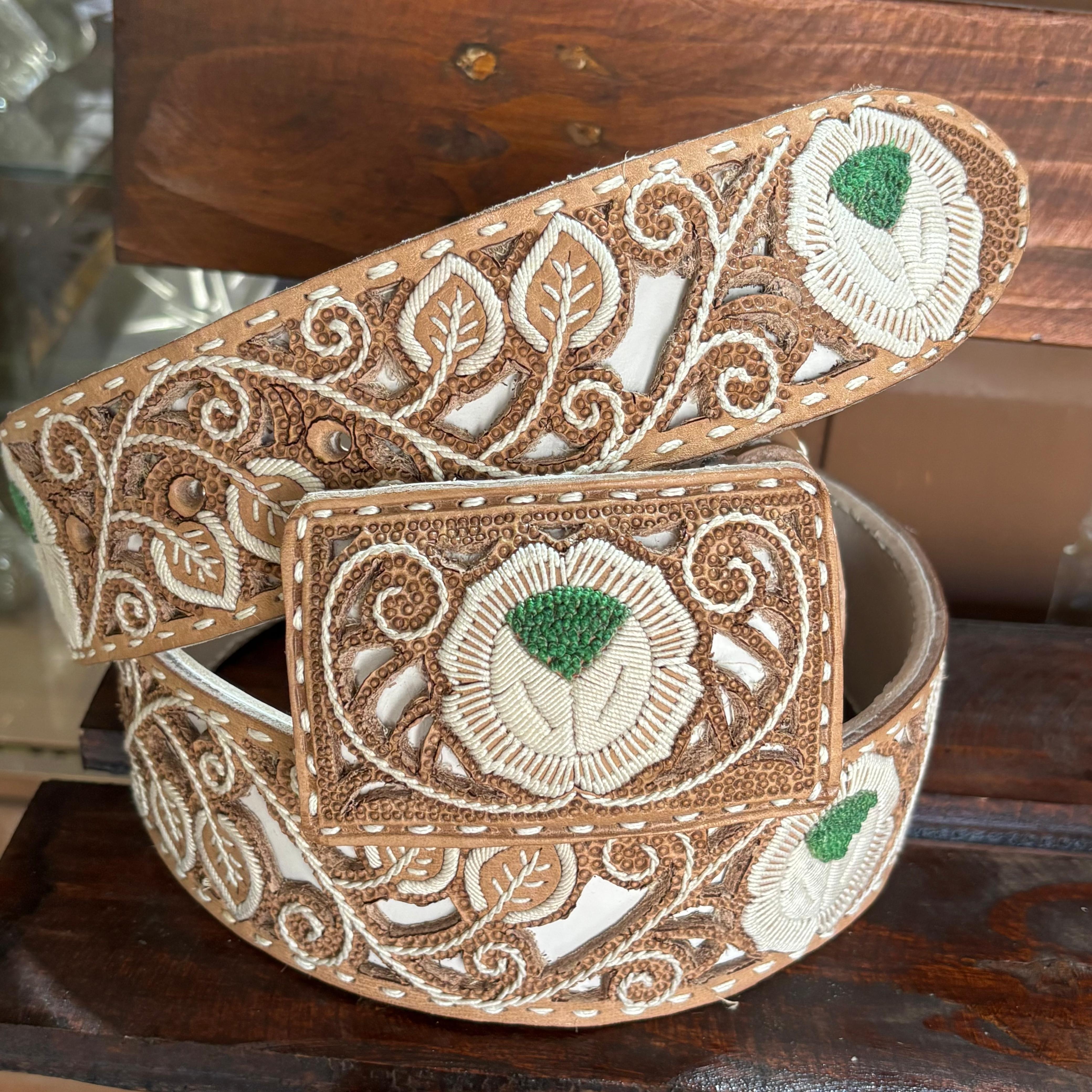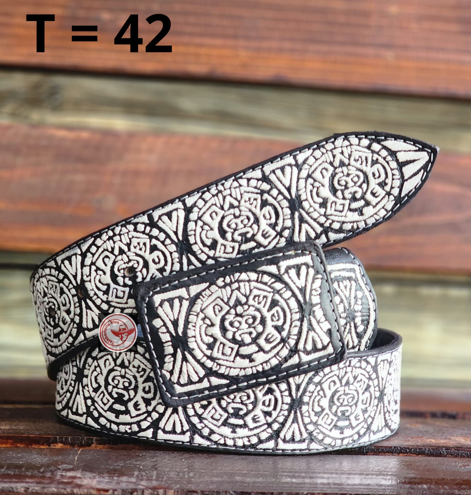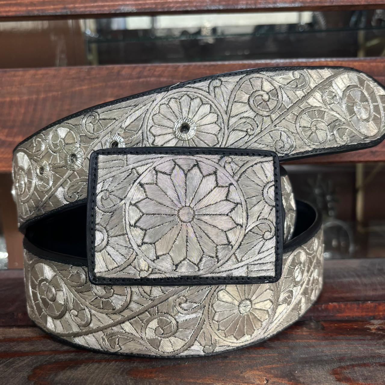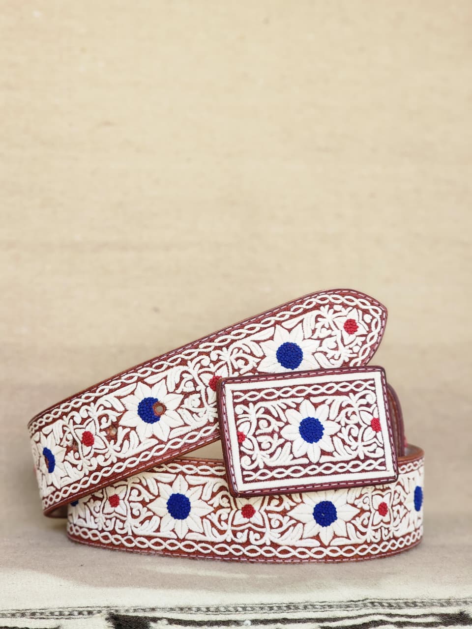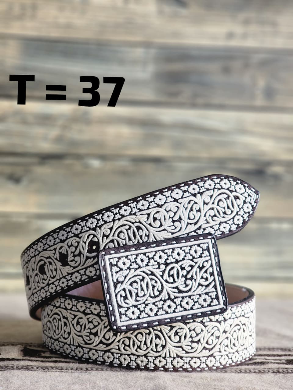 diestros artesanos en el manejo el hilo de pita. Estos cinturones pueden elaborarse también con hilo de plata, dándo a la piel sobre la cual se borda un acabado único.