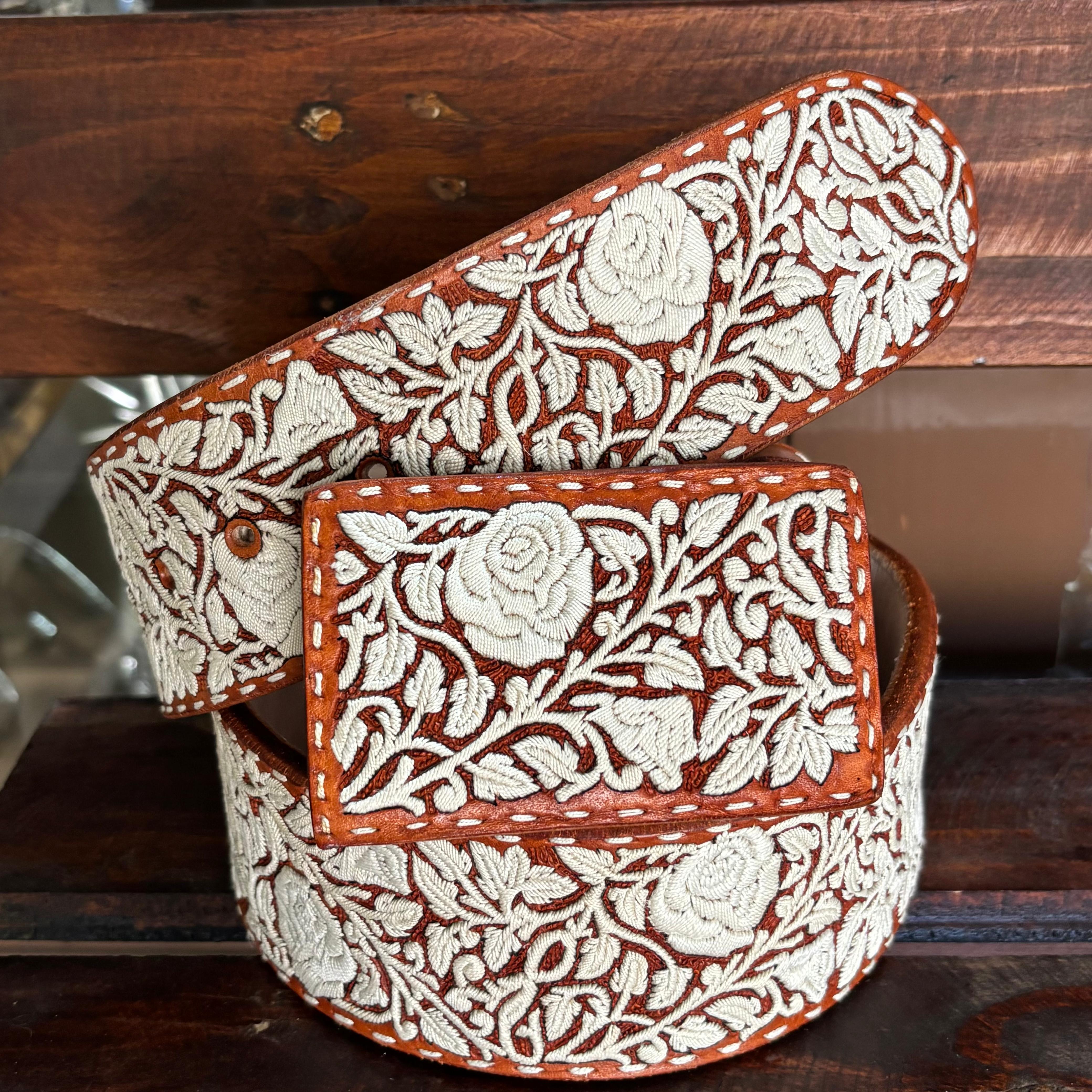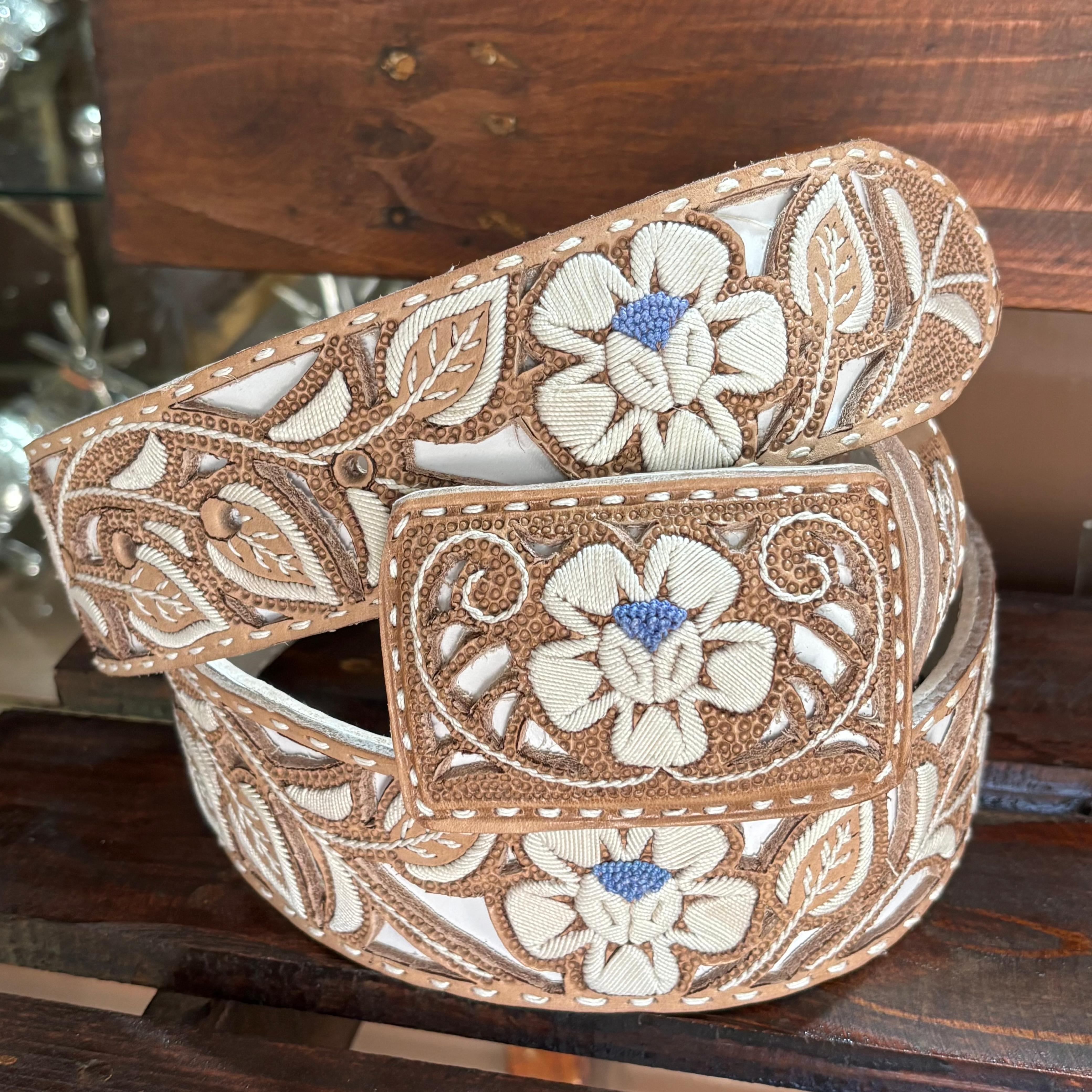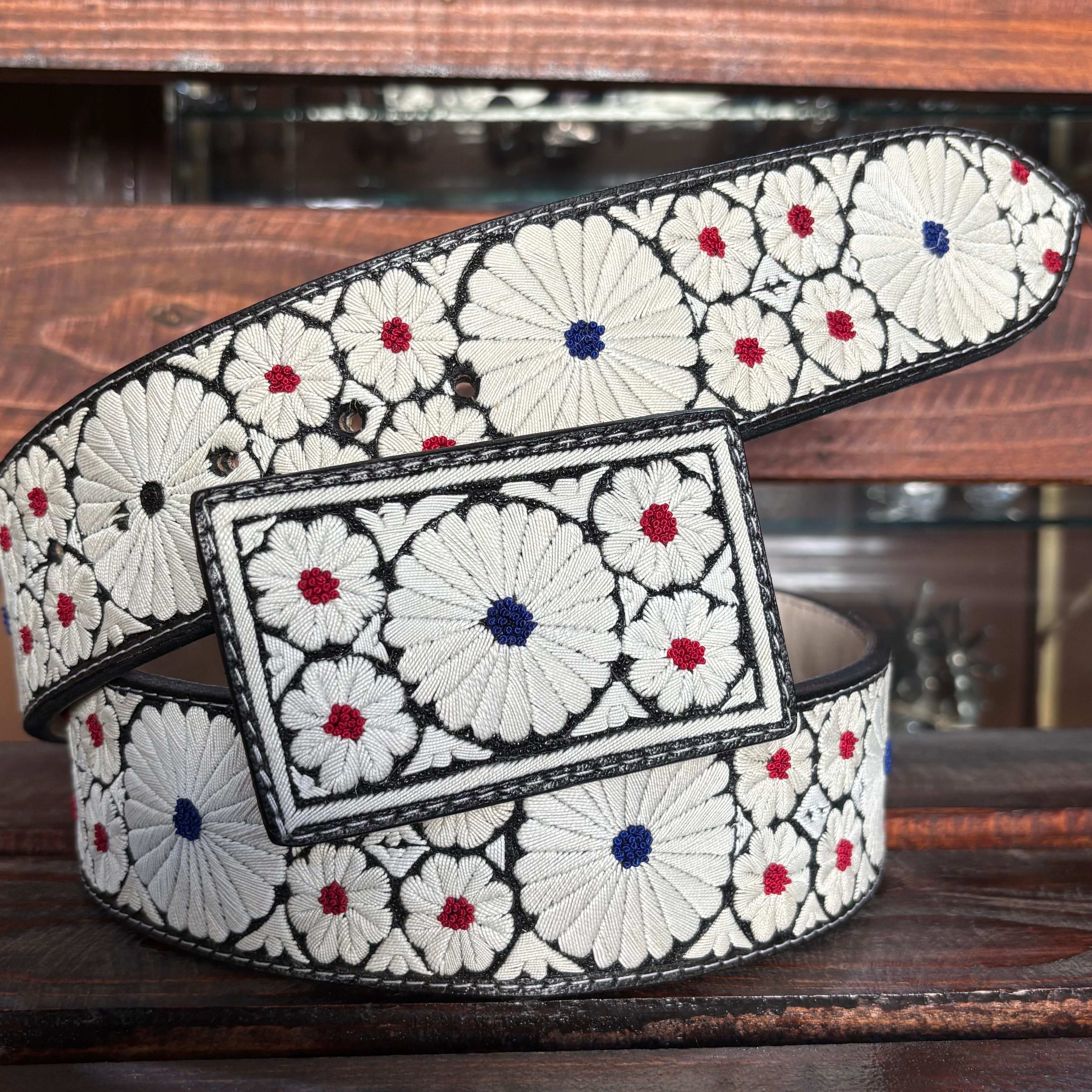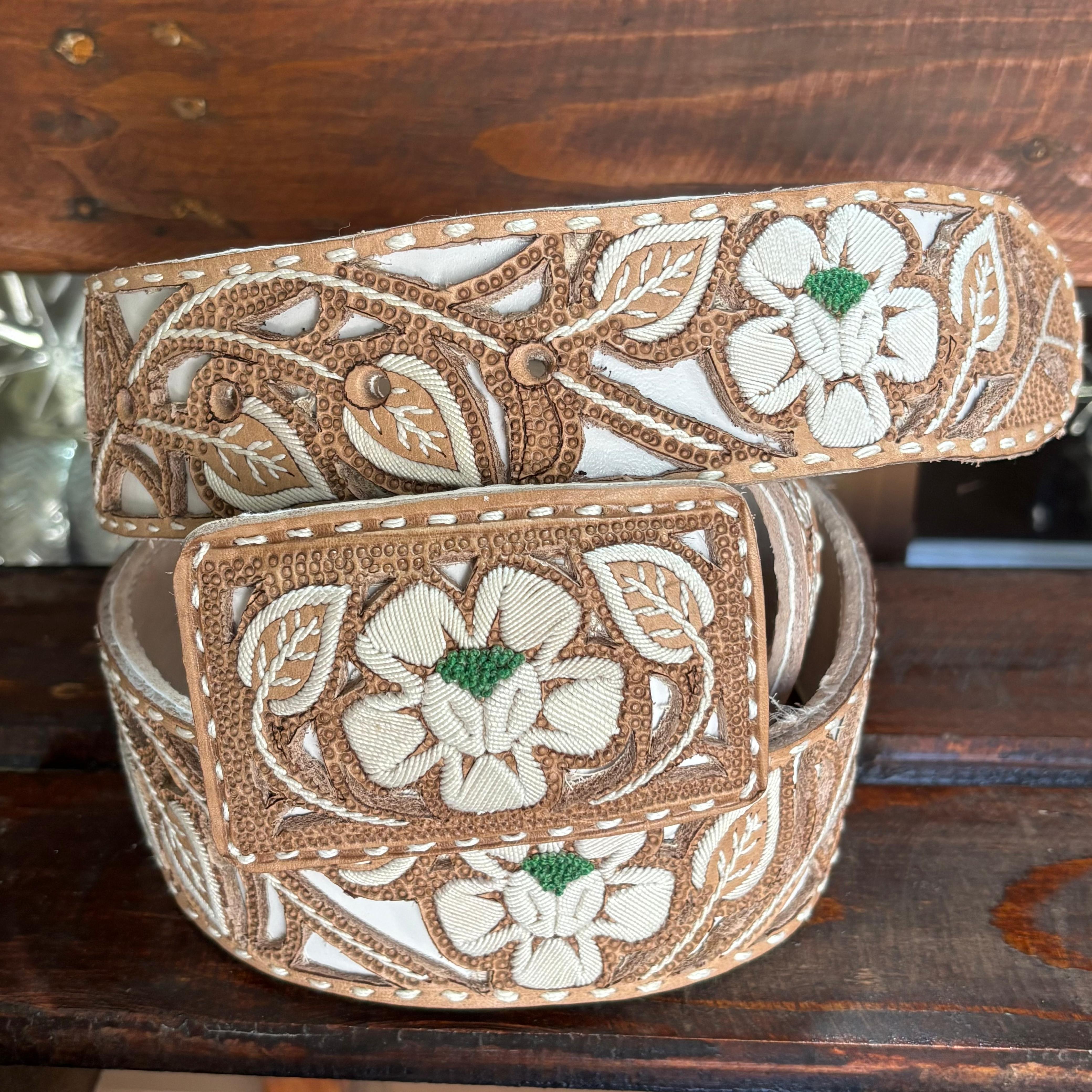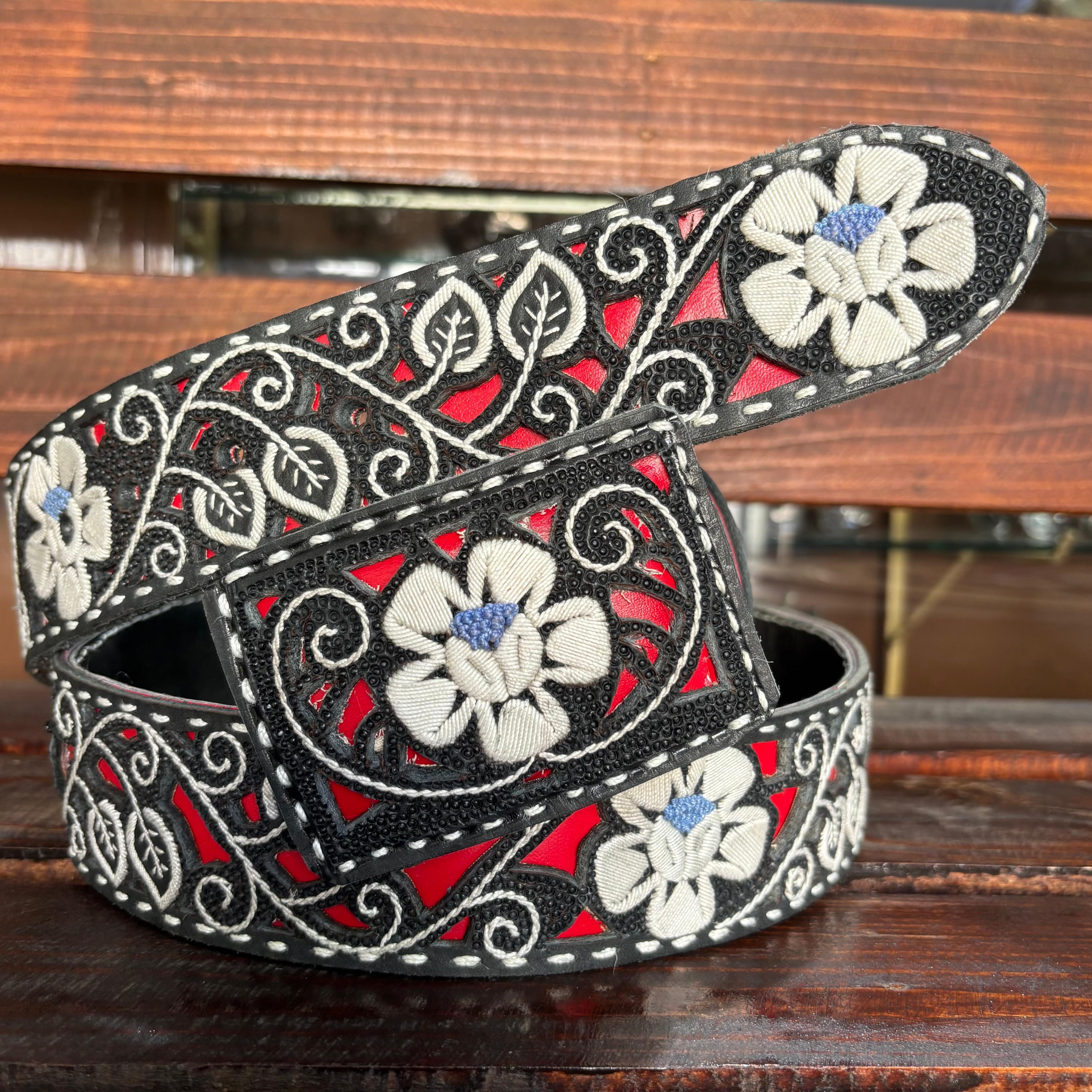 diestros artesanos en el manejo el hilo de pita. Estos cinturones pueden elaborarse también con hilo de plata, dándo a la piel sobre la cual se borda un acabado único.